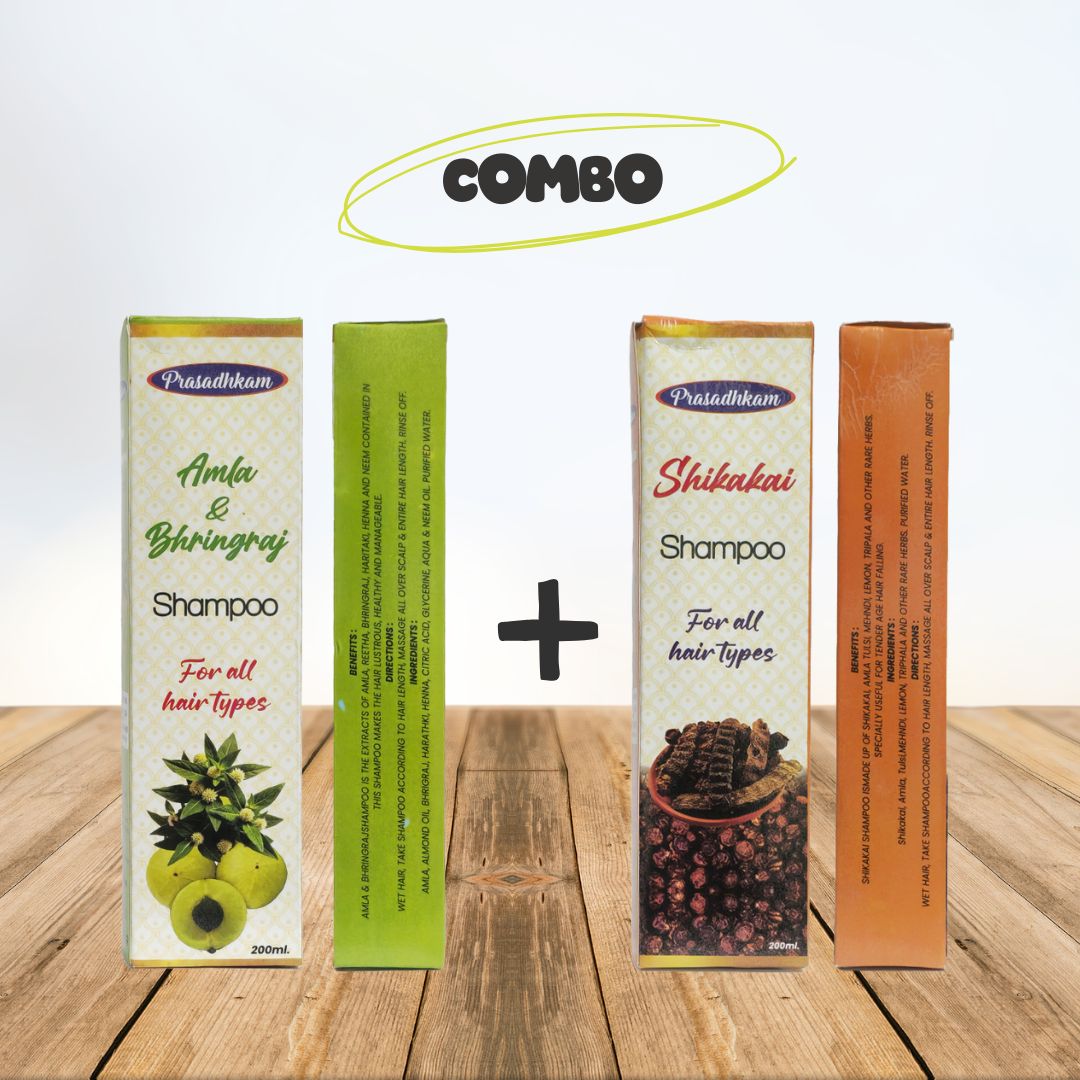 Benefits : Amla & Bhringraj Shampoo is the Extracts of Amla, Reetha, Bhringraj, Haritaki, Henna and Neem Contained in this shampoo makes the hair Lustrous, Healthy and Manageable. Shikakai Shampoo ismade up of shikakai, Amla Tulsi, Mehndi, Lemon, Tripala and Other rare herbs. Specially Useful for Tender Age hair falling